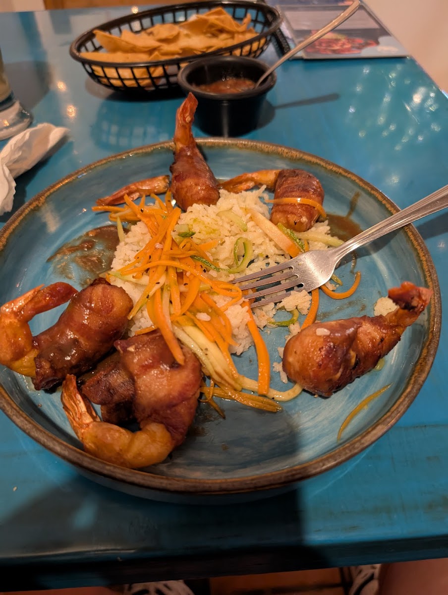 We decided to check out Tuna Azul after seeing some great things about it online and to celebrate getting our temporary residency cards that day. We got the classic tuna montadito and the mummy shrimp. Both were excellent. The margaritas were also quite good. Our service was amazing (thanks Guillermo and Ramon). By far the best meal and service we’ve had during our 2 weeks we have been in PV so far. We will definitely be back.